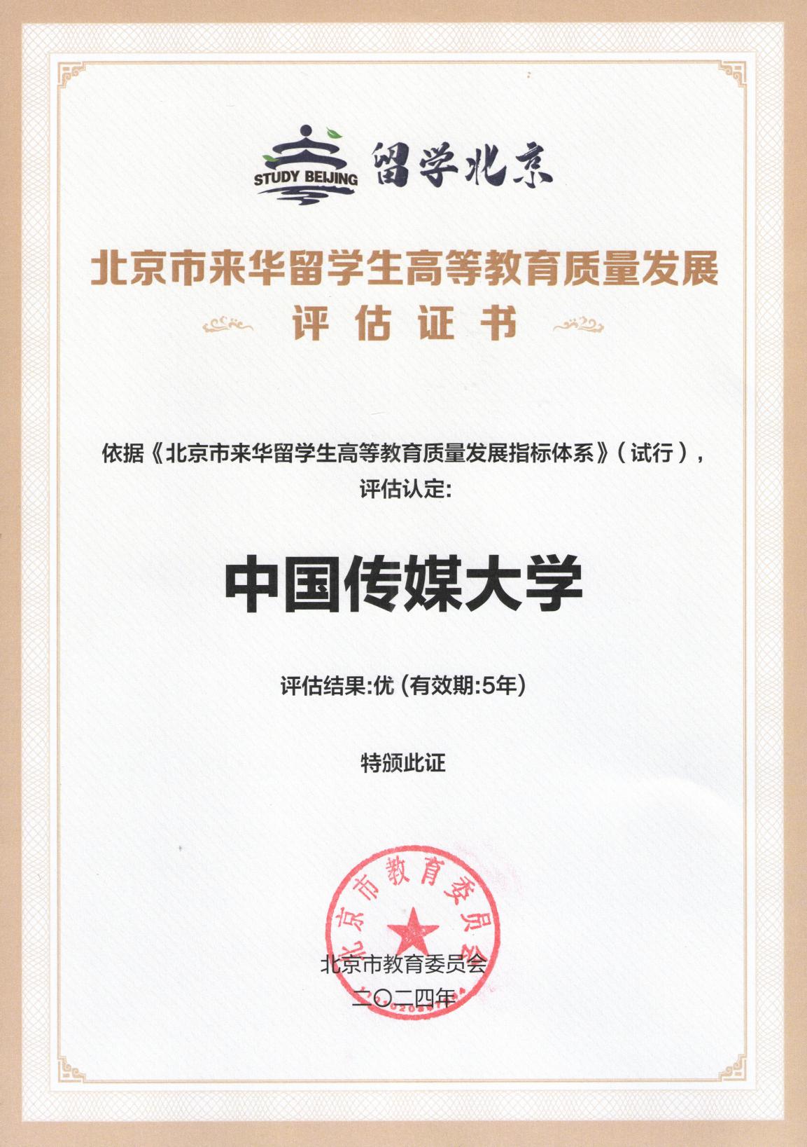 在“留学北京”总结环节,北京市教委对在2024年来华留学生高等教育质量发展评估中表现突出的高校进行了表彰,我校与清华大学、北京外国语大学等五所高校被认定为“优”等级。这个成绩的取得,体现了北京市教委和专家对学校目前来华留学生工作的高度认可,也展现了我校在推动国际化教育发展中的积极作为。