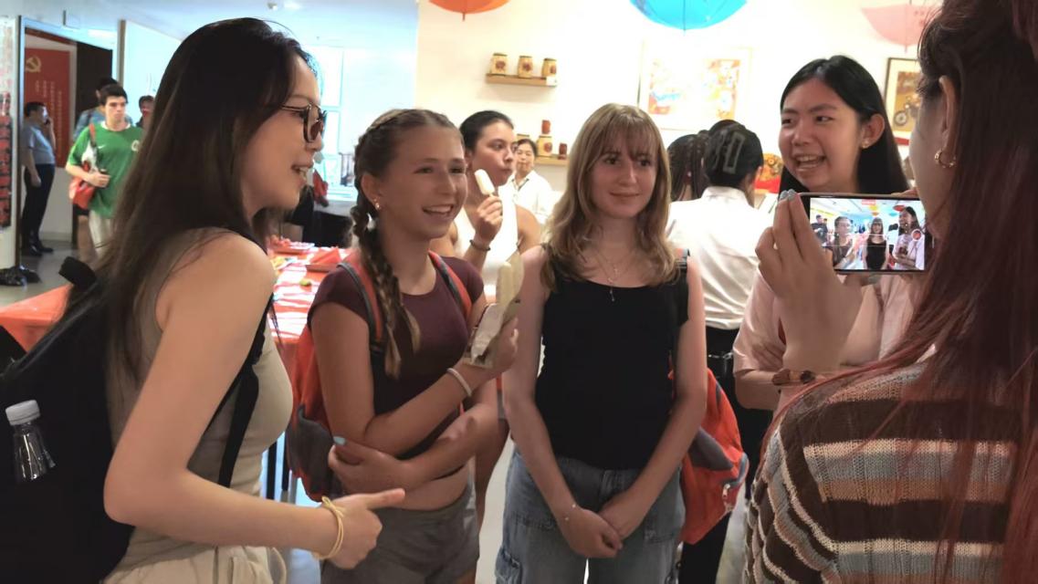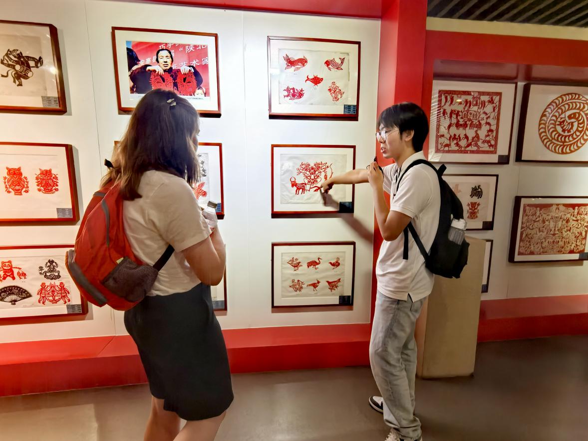 918博天堂学生为美国飞虎队友谊学校青少年研学团成员讲解非遗技艺安塞剪纸